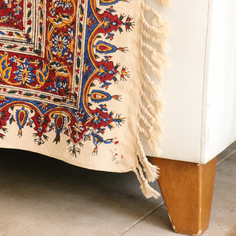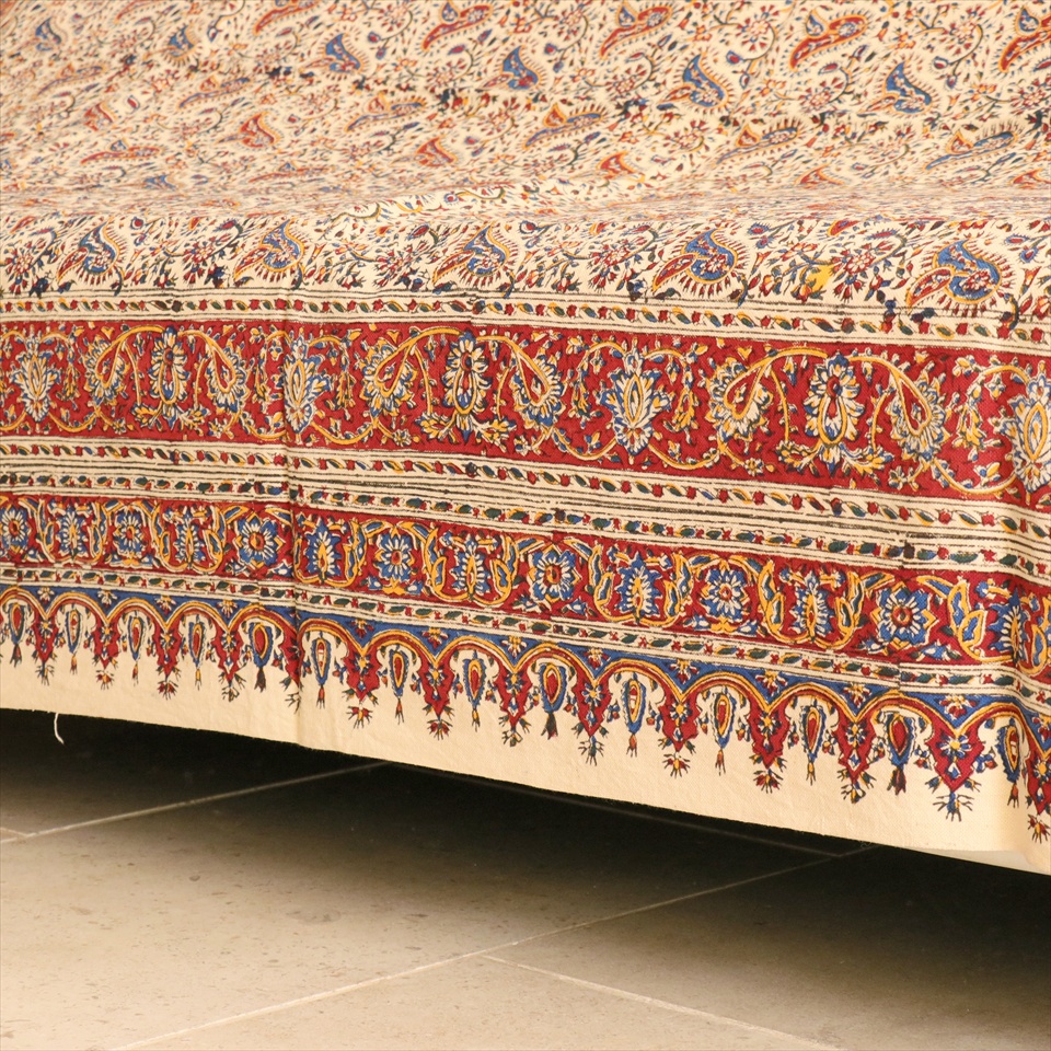 イランの古都イスファハンの工房で、職人さんが一点ずつ丁寧に染めています。生地はしっかりとした厚みのある綿100%の一枚布。