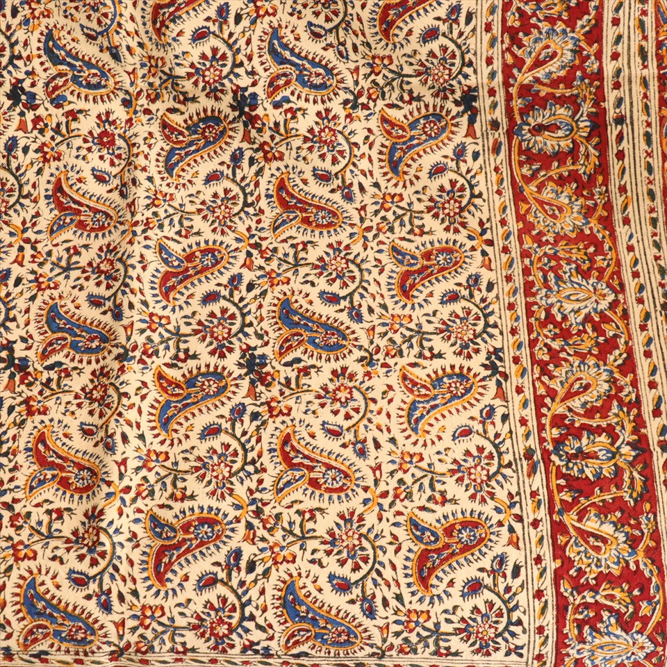 中世よりの伝統的な技法をそのまま使って、手彫りの木製のスタンプを重ねて手作業で染め上げたハンドプリントの更紗(さらさ)布です。
