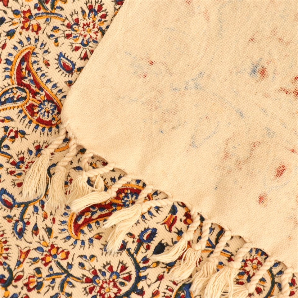 ペルシャ更紗 イラン手染め布 190×130cm アンバー系 フラワー柄 テーブルクロス ソファカバー