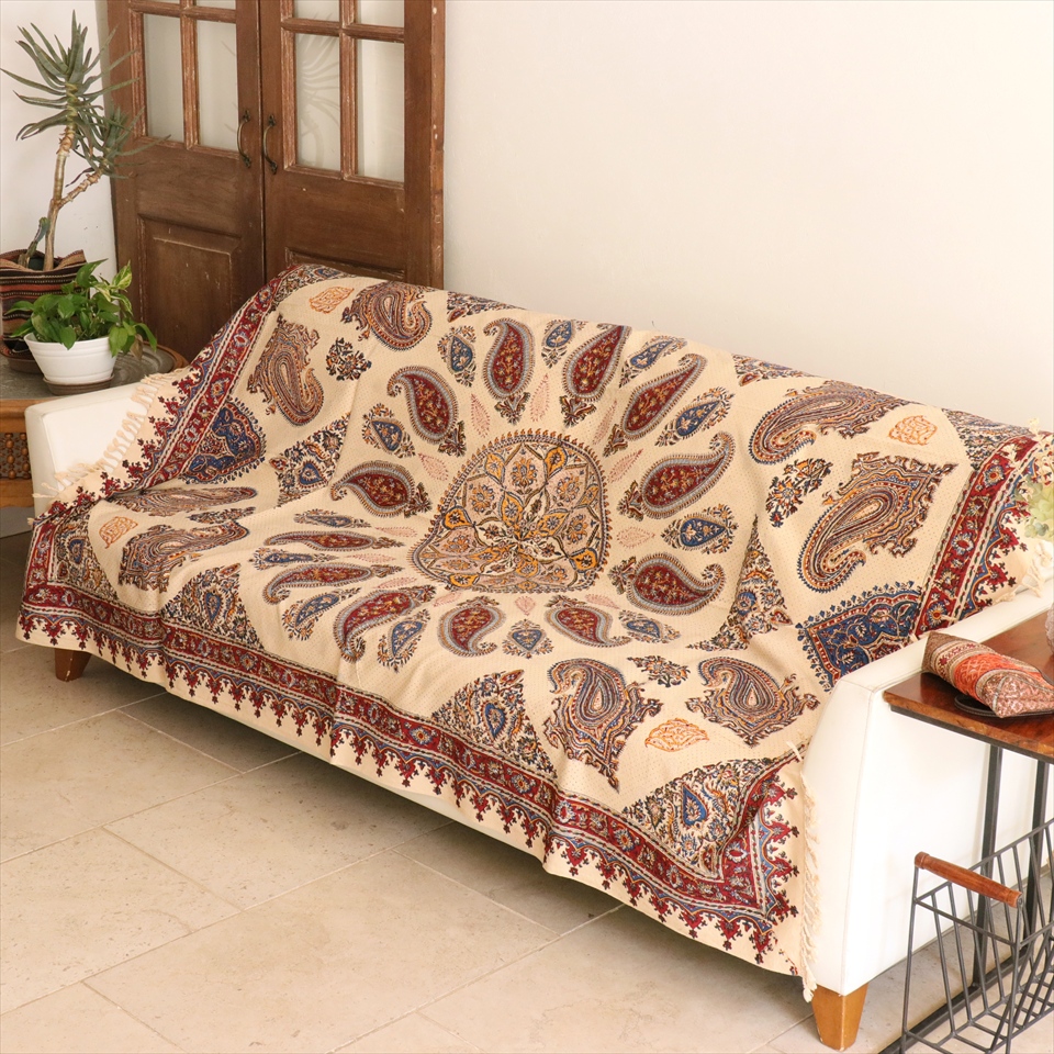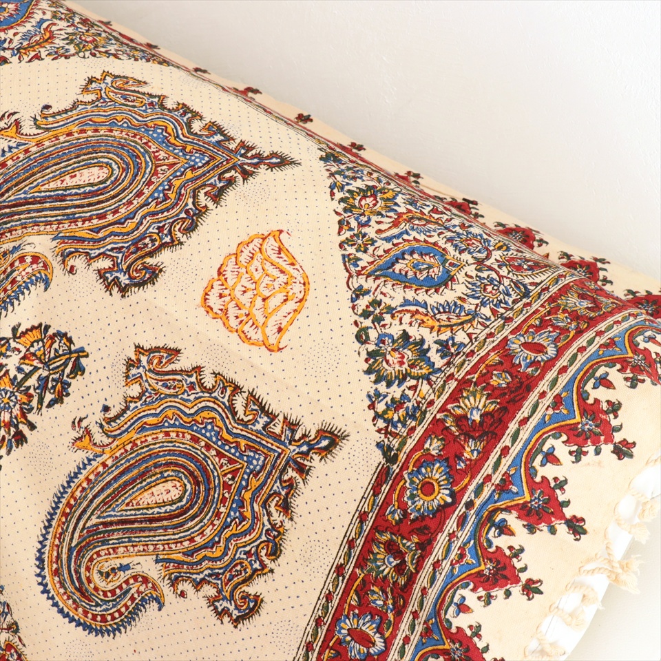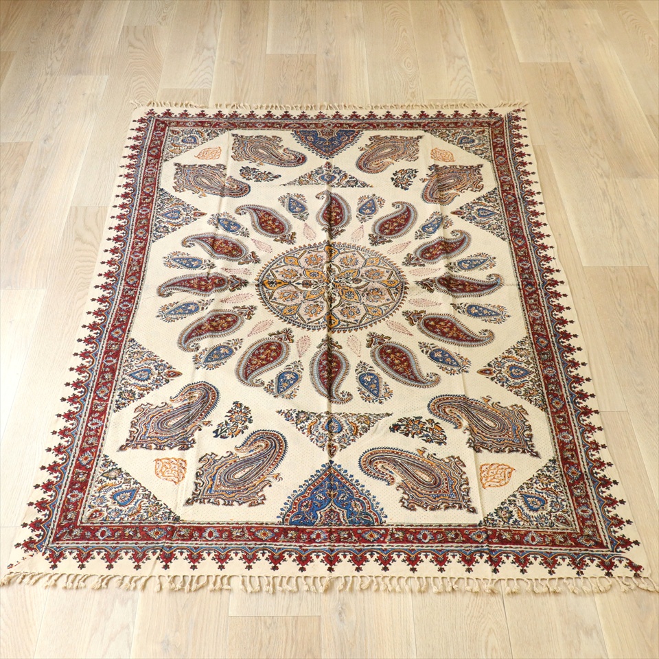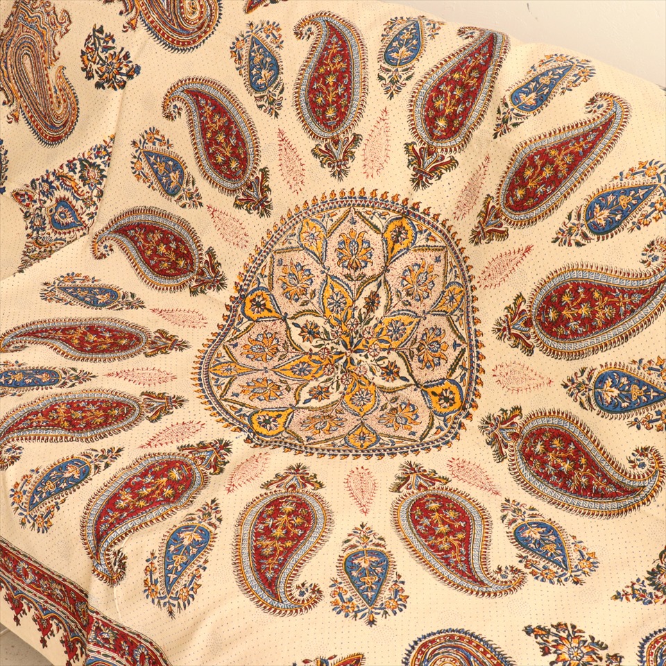 ペルシャ更紗 イラン手染め布 197×130cm アンバー系 ペイズリー柄 テーブルクロス ソファカバー