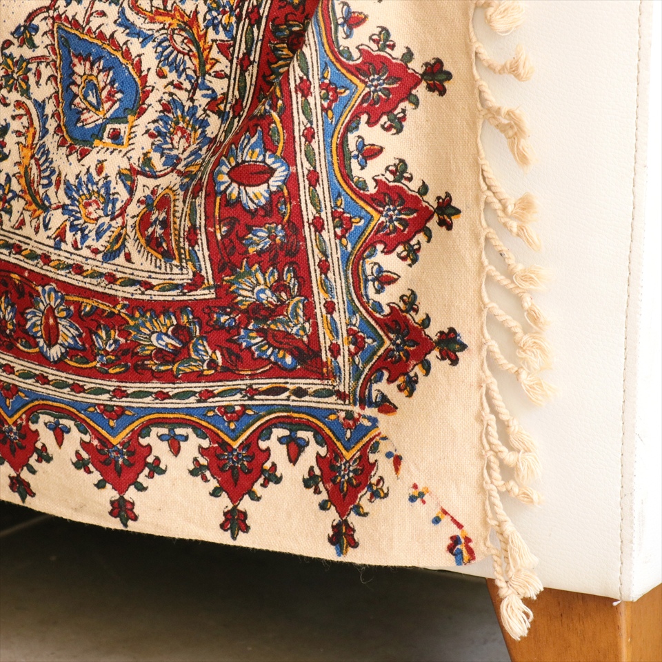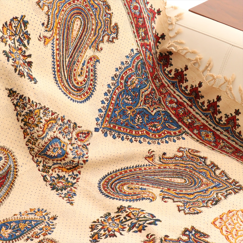 Key:コットン 染色 ブロックプリント 木版 捺染 伝統工芸 ペルシャブルー ペイズリー フリークロス マルチカバー ベッドスプレッド ベッドカバー ソファカバー カーテン タペストリー ファブリック インテリアファブリック クラフト インテリア ペルシャ ペルセポリス イラン 中東 シルクロード アジアン エスニック 200cmサイズ