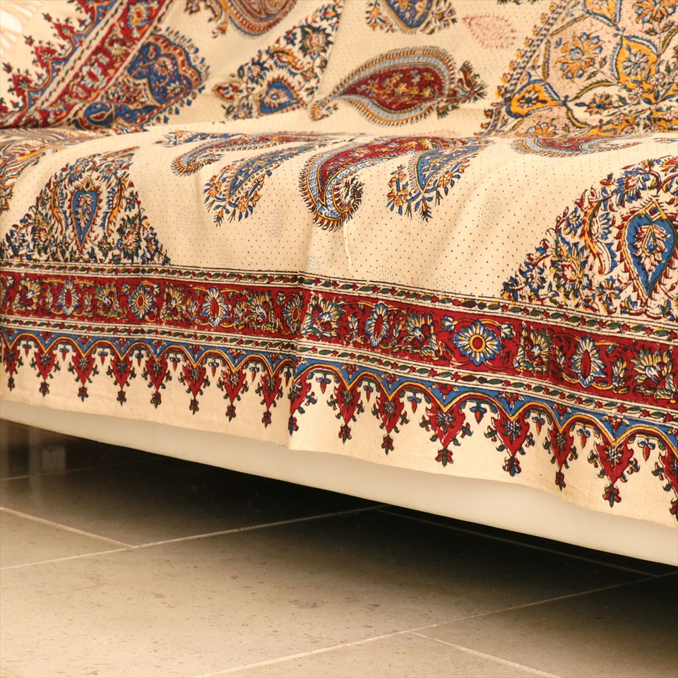 イランの古都イスファハンの工房で、職人さんが一点ずつ丁寧に染めています。生地はしっかりとした厚みのある綿100%の一枚布。