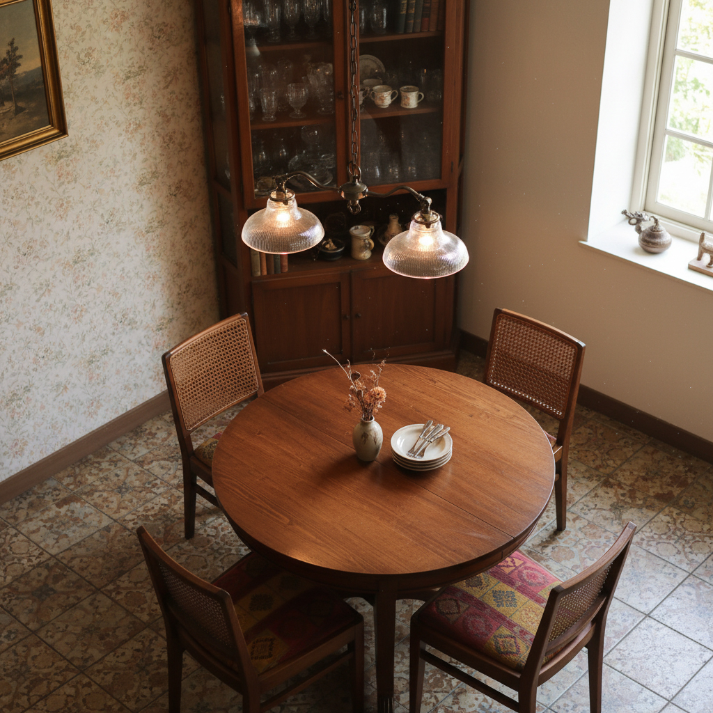 />/>/>レトロな雰囲気たっぷりのガラスのシェードを使ったペンダントランプ(シャンデリア)。素材に真鍮を使っているため時間の経過と共に変化するその味わい深い風合いをお楽しみ頂けます。