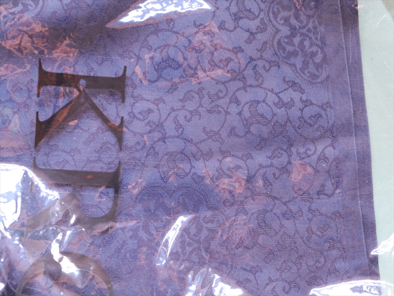 ベースとアラベスクモチーフともに同じ色で濃紺です。光の当たる方向によって、ペイズリーデザインが浮かび上がります。