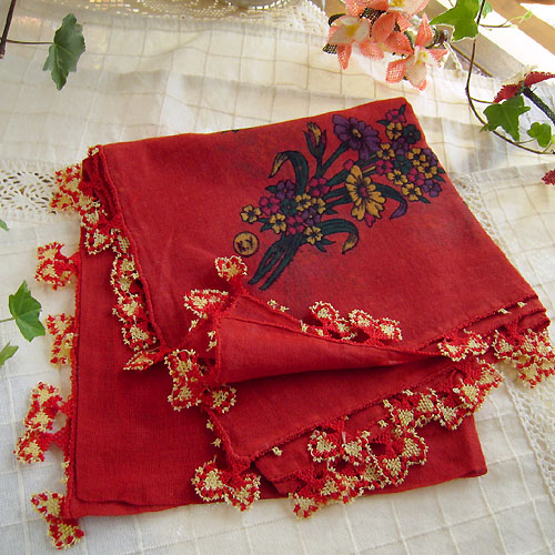 イスラム女性の身だしなみといえばスカーフ。トルコの女性は手編みの小花がついたかわいらしいスカーフで、つつましく髪の毛を覆っているのです。