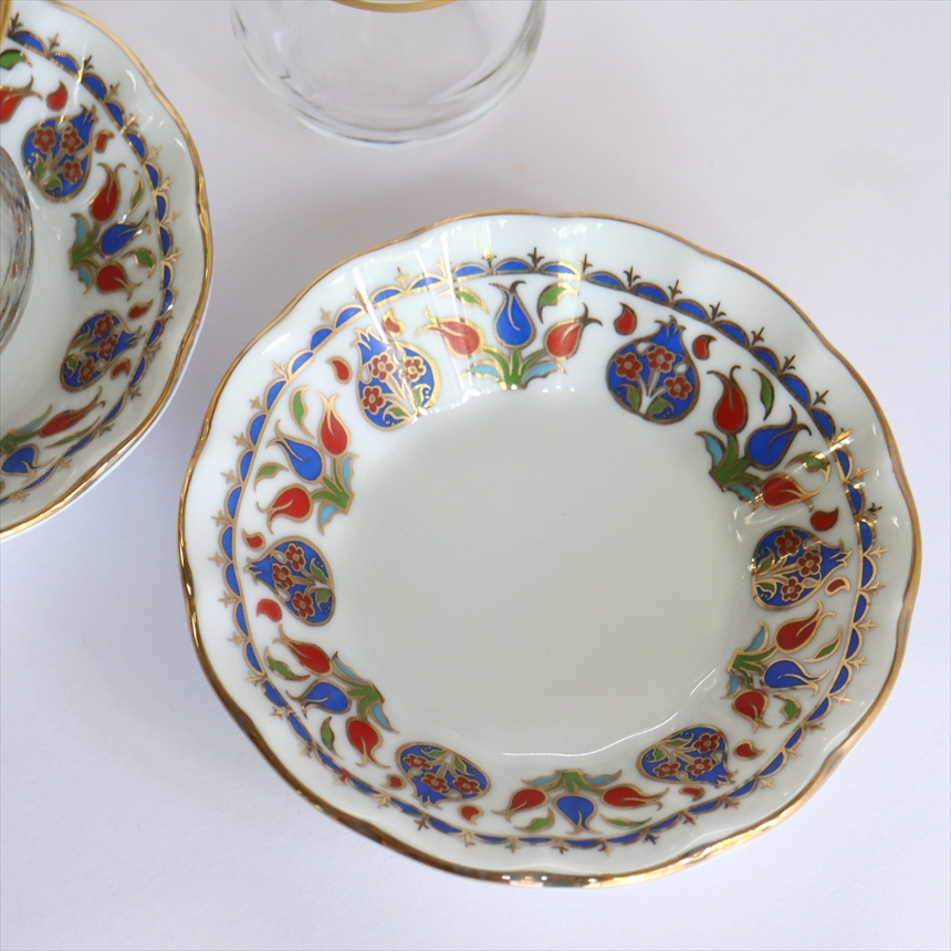 サイズ | お皿 直径10.5cm チャイグラス 高さ8.3cm飲み口直径5.8cm 容量約120cc(すりきり一杯) |