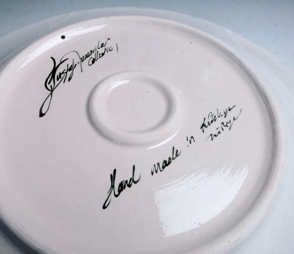 トルコの陶器産業の中心地「キュタフヤ」の工房で手書き絵付けされている飾り皿です。オスマントルコ時代からの伝統を守りつつも、新しいデザインや技術を取り入れた、21世紀の伝統工芸品です。