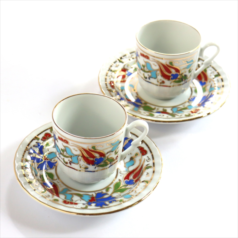 - 【15%OFF】トルココーヒー カップ&ソーサー 2客セット エスプレッソ トルココーヒー用 :赤いチューリップ/トルコお土産