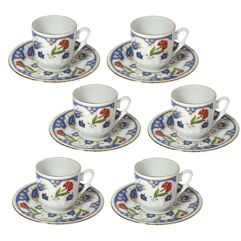 - 【15%OFF】エスプレッソ デミタスコーヒーカップ&ソーサー珍しい小さめ椀皿トルココーヒー用 6客セット:カーネーション/トルコお土産