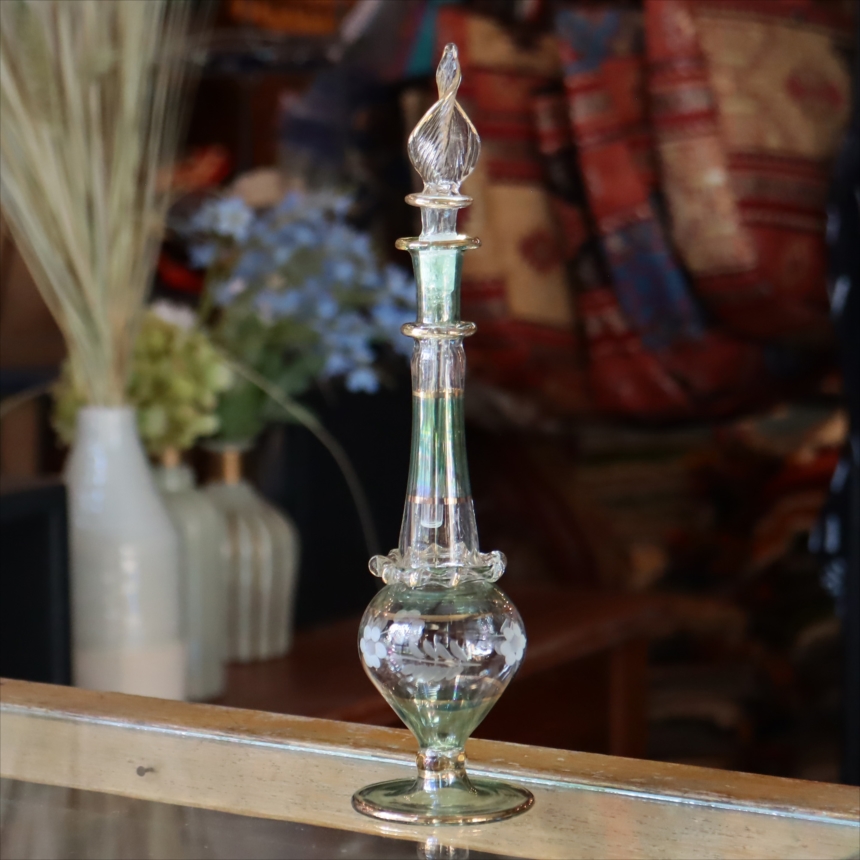 エジプト香水瓶 トールサイズ クレオパトラ グリーン Egyptian Glass purfume bottle