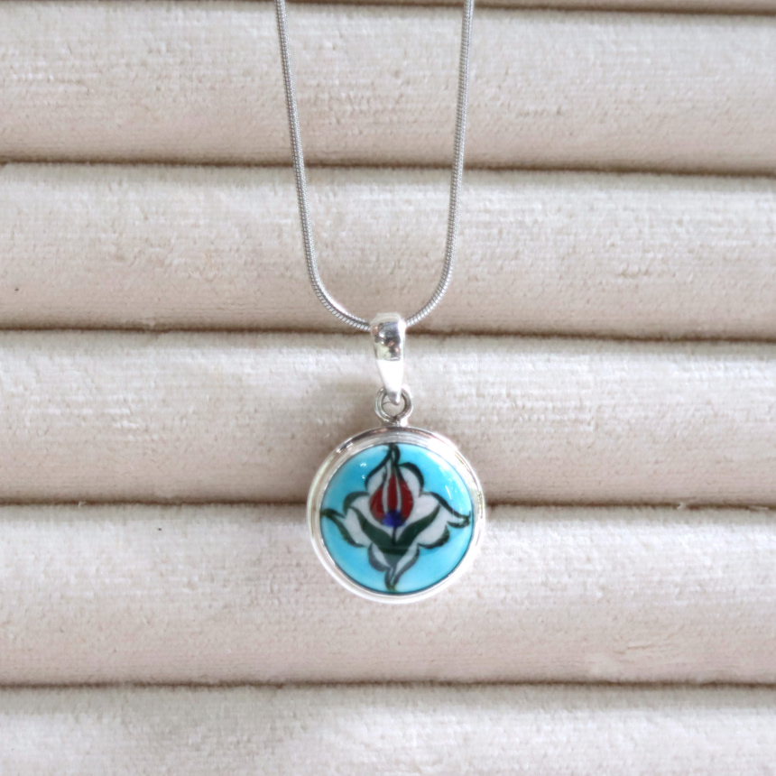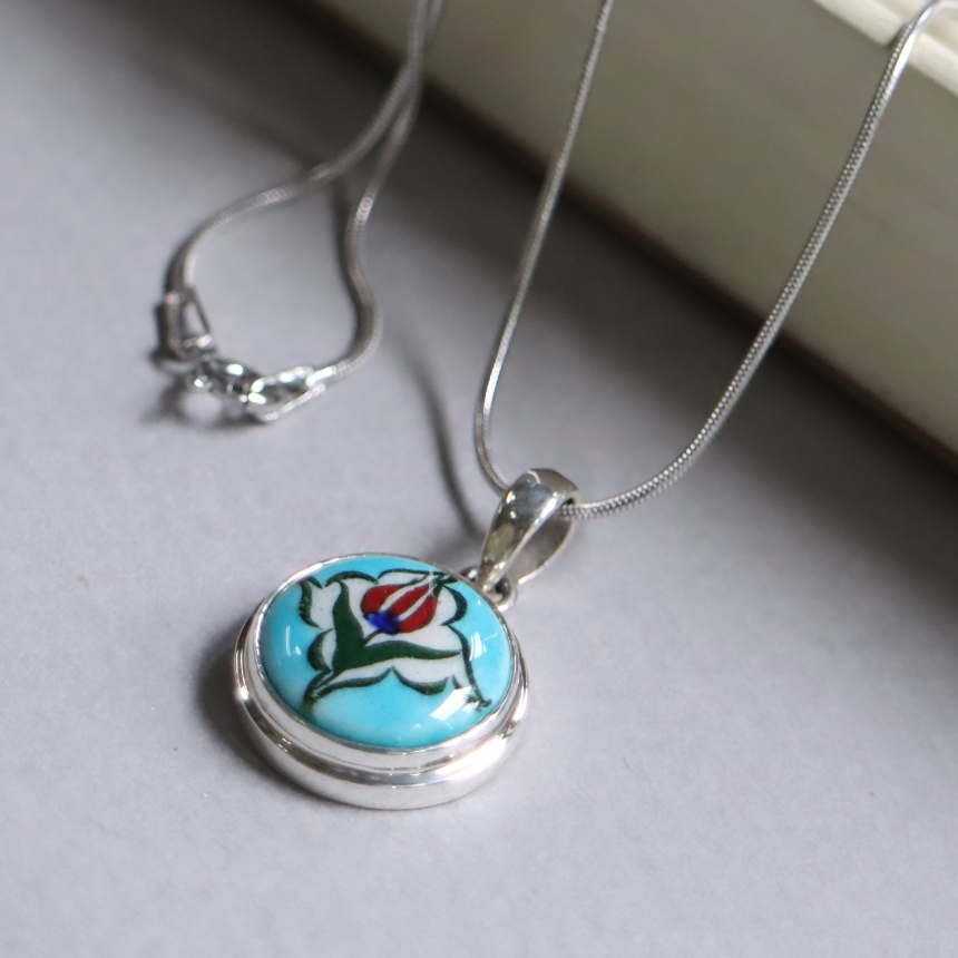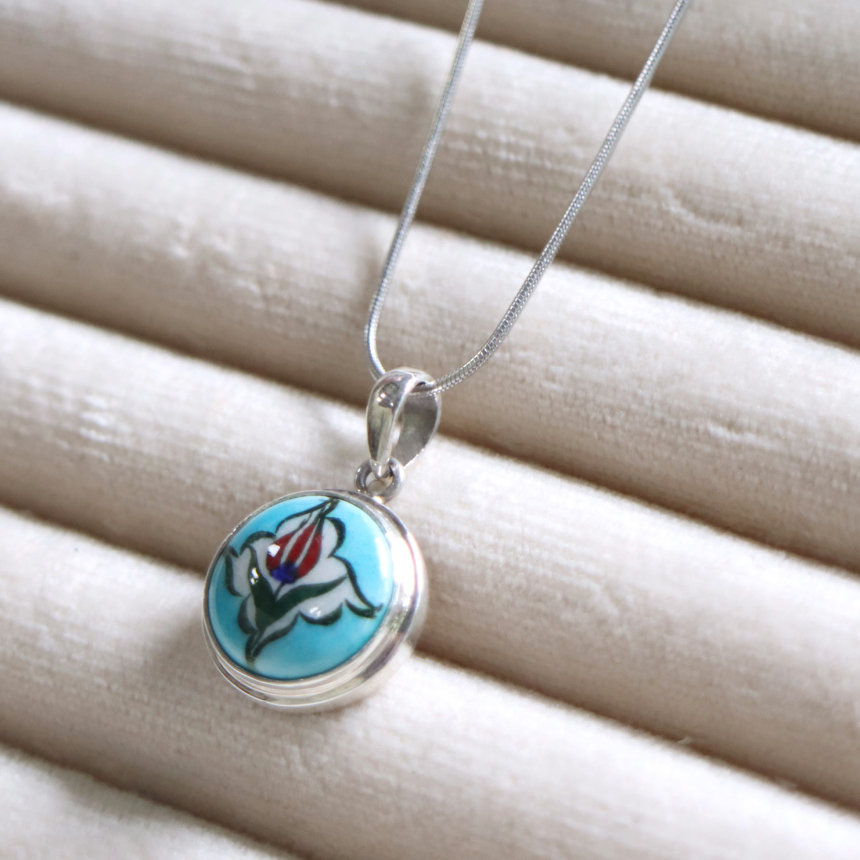 トルコ陶器産業の中心、キュタフヤで手描きされた小さな陶板がモチーフになっています。