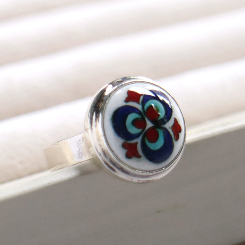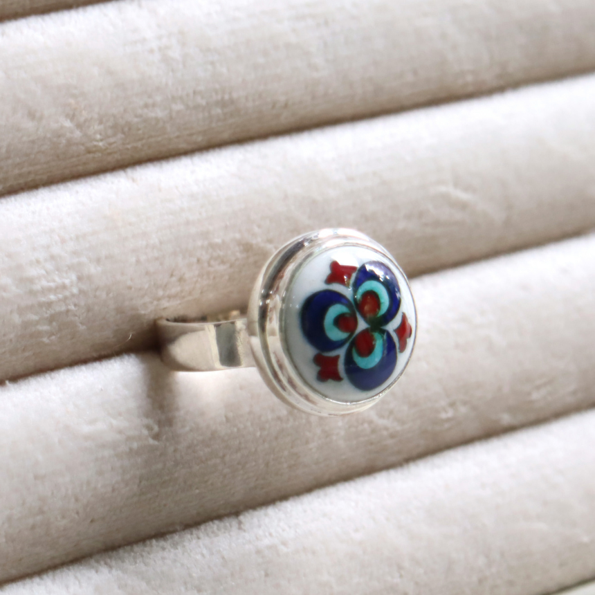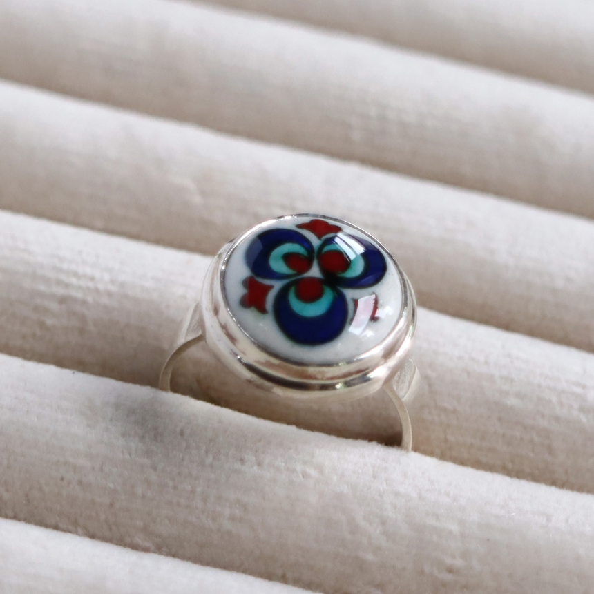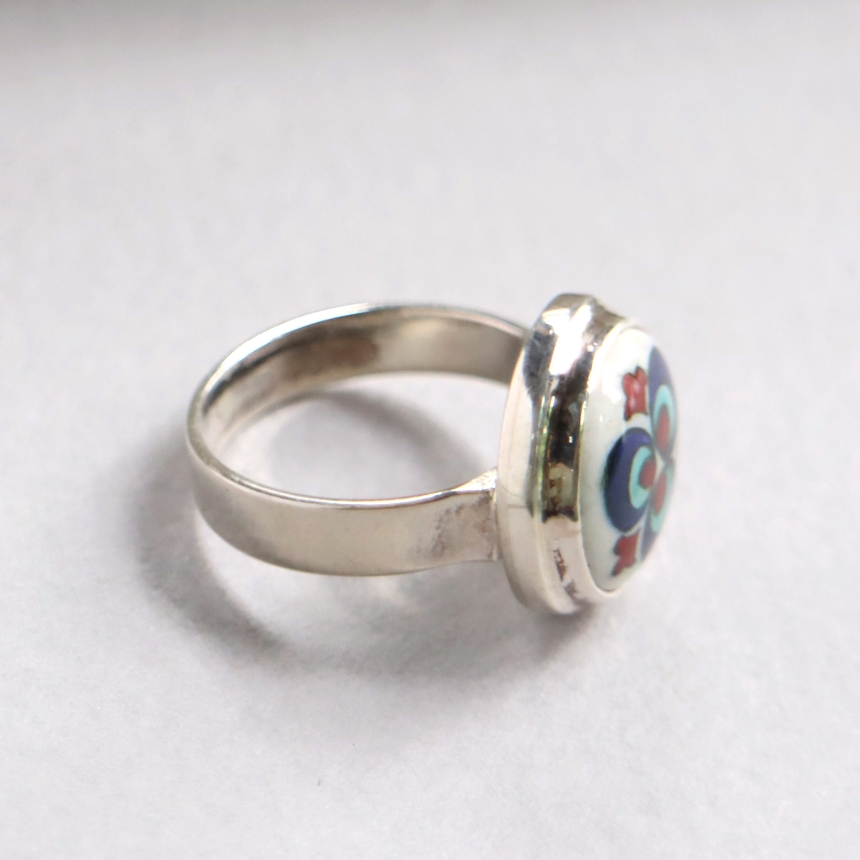 トルコ キュタフヤは陶芸の街!トルコの職人が、ひとつひとつ手描きで絵付けした小さな陶器をモチーフにしたシルバーリングです。
