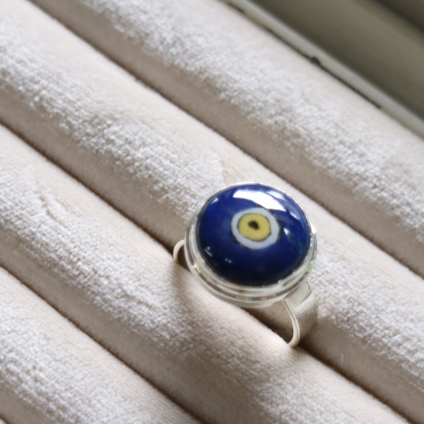 トルコ キュタフヤは陶芸の街!トルコの職人が、ひとつひとつ手描きで絵付けした小さな陶器をモチーフにしたシルバーリングです。