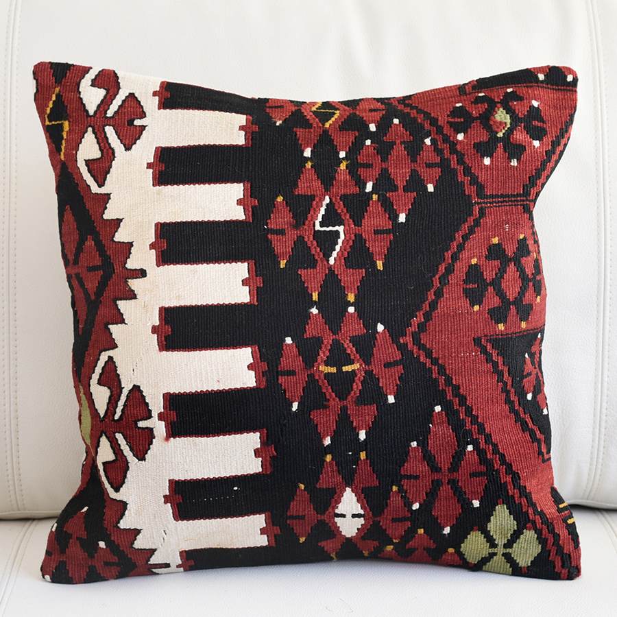 トルコ東部・マラテヤ地方のオールドキリム。コチボユヌズ(羊の角)のモチーフが大きく入っているクッション。