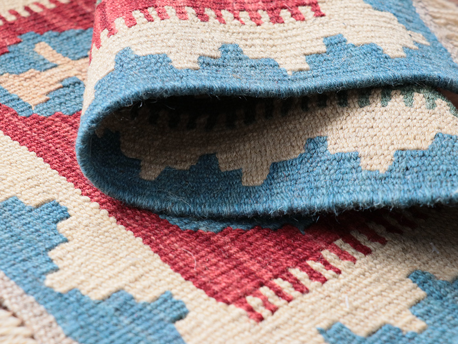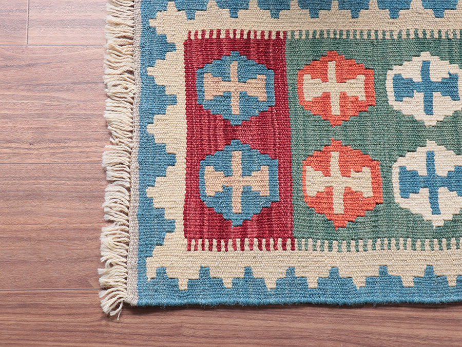 キリムはすべて手織りで作られています。織る女性の手の加減によって、サイズの多少の誤差やゆがみ等がありますことはご了承願います。