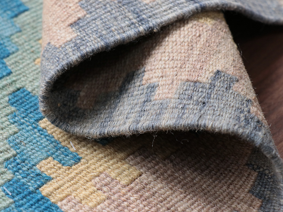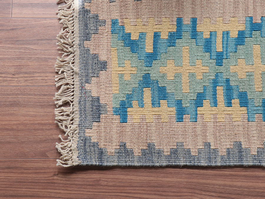 キリムはすべて手織りで作られています。織る女性の手の加減によって、サイズの多少の誤差やゆがみ等がありますことはご了承願います。