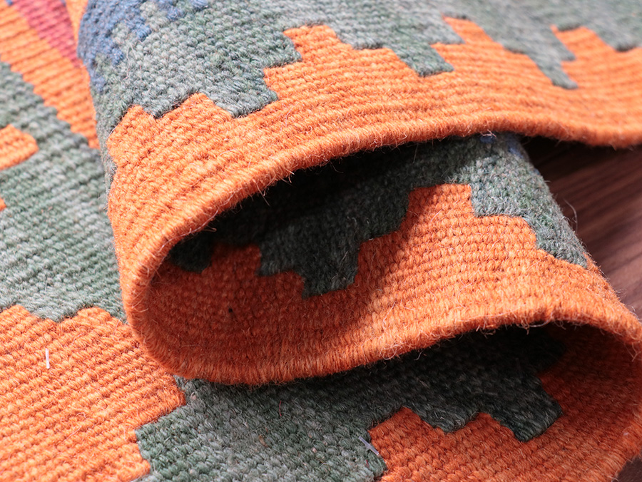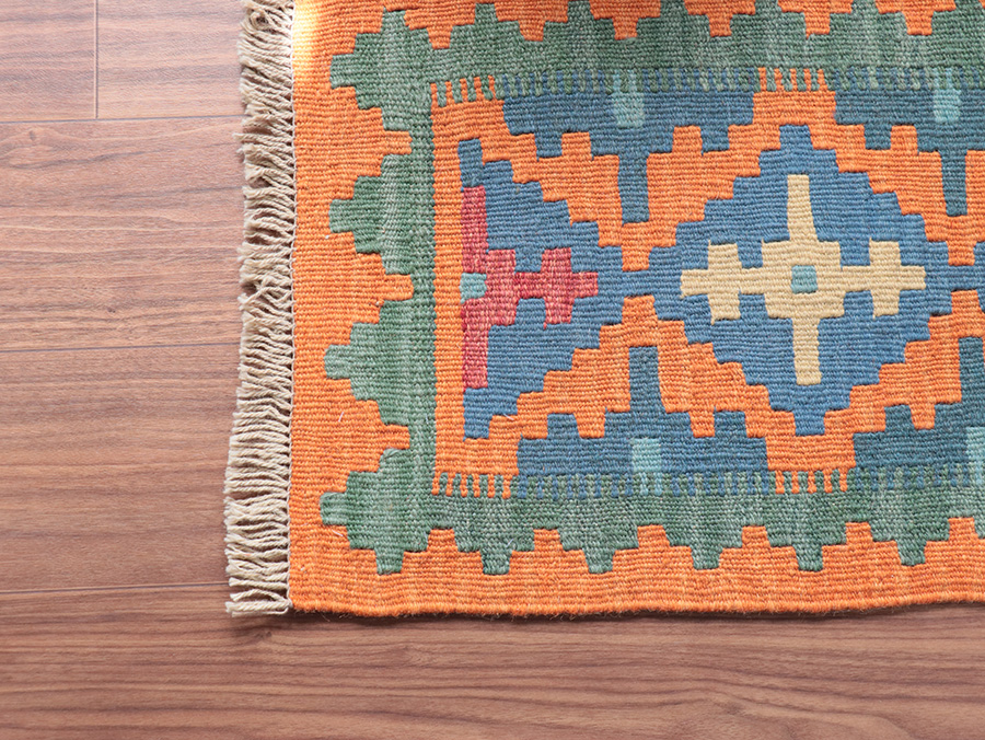 キリムはすべて手織りで作られています。織る女性の手の加減によって、サイズの多少の誤差やゆがみ等がありますことはご了承願います。