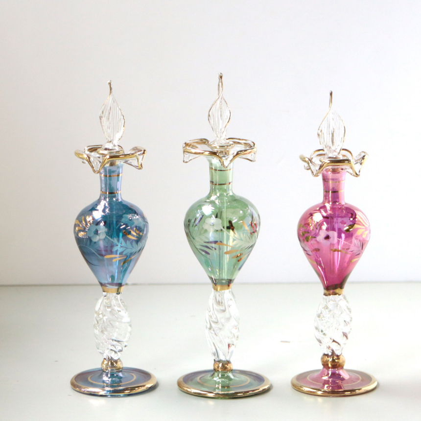 エジプトガラス香水瓶 Egyptian Perfume Bottle ブルー クリスタルステム