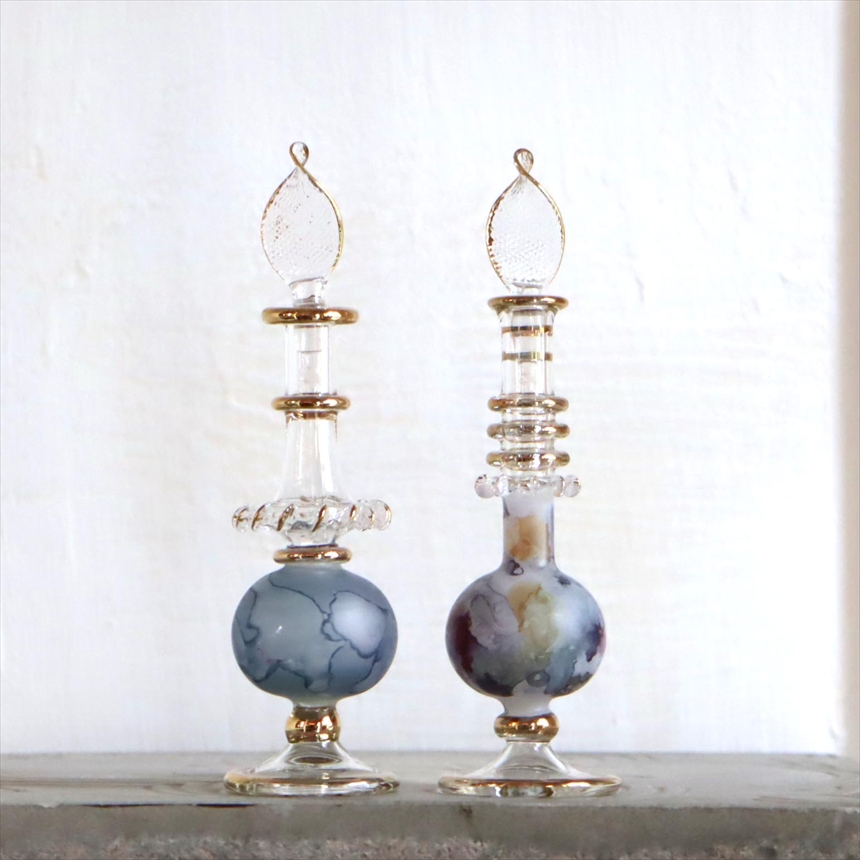 エジプト ガラス香水瓶 2本セット マーブル マットペイント Egyptian Glass Bottle