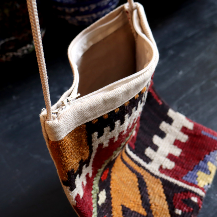 Key:オールドキリム, ヴィンテージキリム, コレクタブル, 古布, ポシェット, ポーチ, 小物入れ, サコッシュ, トルコ雑貨, ハンドメイド, Old kilim, Turkish kilim, pochette, Sacoche,キリムポシェットMサイズ,キリムバッグ