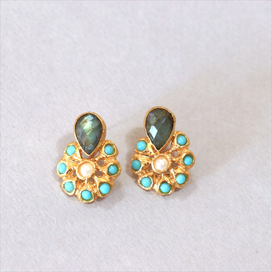 アルサメイア ピアス 古代王朝のデザイン 天然石22Kゴールドプレーテッド トルコジュエリー 色石