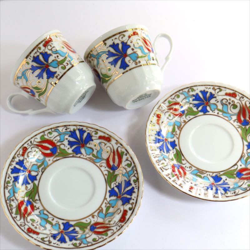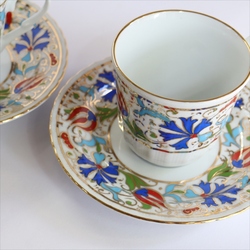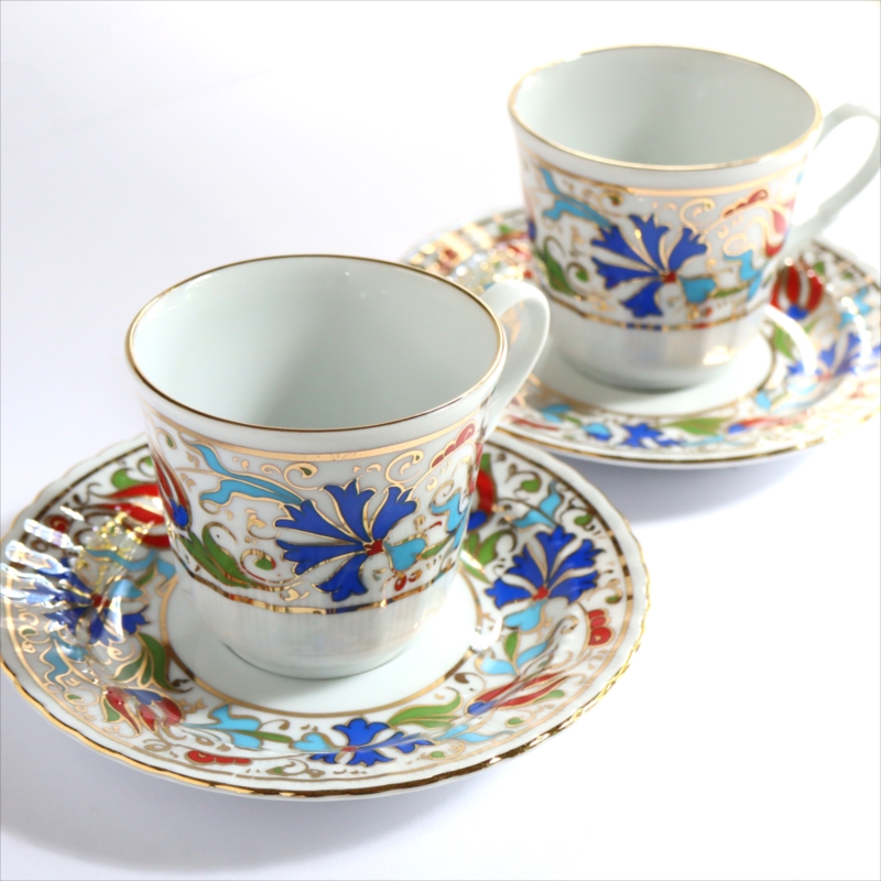 こちらはデミタスカップより少し大きめのサイズのカップ&ソーサーです。トルコでは、『ネスカフェカップ(カフェオレ用という意味)』と呼んでいます。ティーカップとしても優雅なひとときをお楽しみ頂けます。