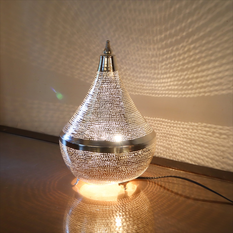 Key:モロッコランプ BOHO モロッコランタン メタルシェード ボヘミアンスタイル シルバー メタルランプ インダストリアル テーブルランプ テーブルライト 間接照明 室内照明 店舗照明 Morroco Lamp Egyptian lamp Egypt craftmanship