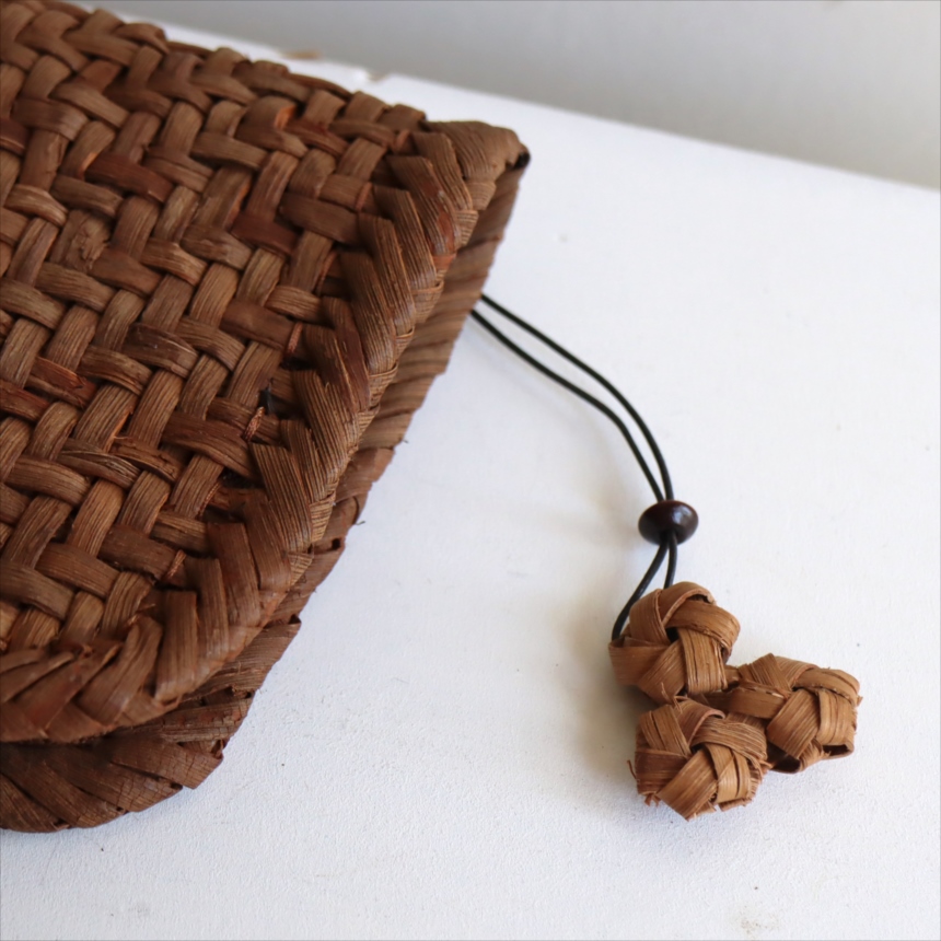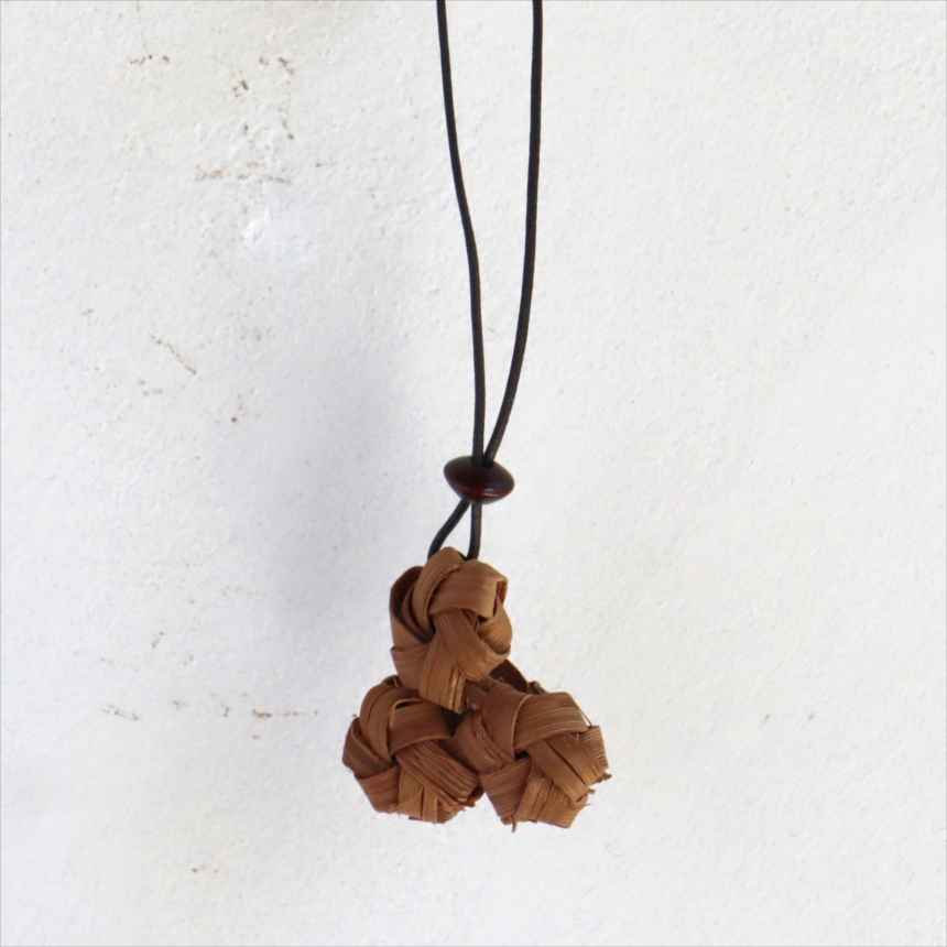 山ぶどうの蔓を編んでつくられた根付です。素朴で自然な風合いを楽しめます。使って撫でてを繰り返していると、艶が出て味わい深い質感に変わっていきます。その変化もお楽しみください。