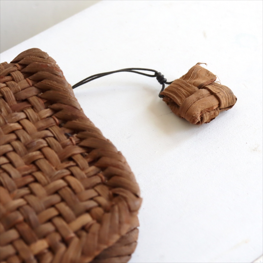 山ぶどうの蔓を編んでつくられた根付です。素朴で自然な風合いを楽しめます。使って撫でてを繰り返していると、艶が出て味わい深い質感に変わっていきます。その変化もお楽しみください。