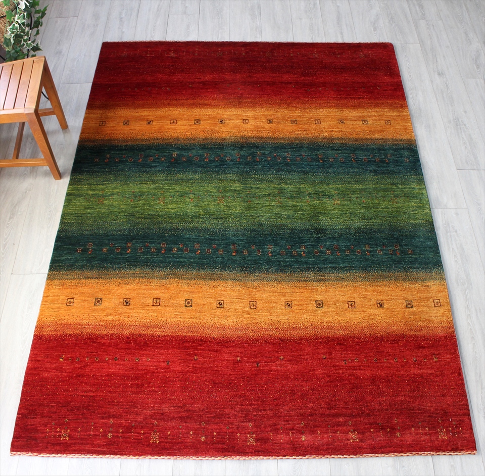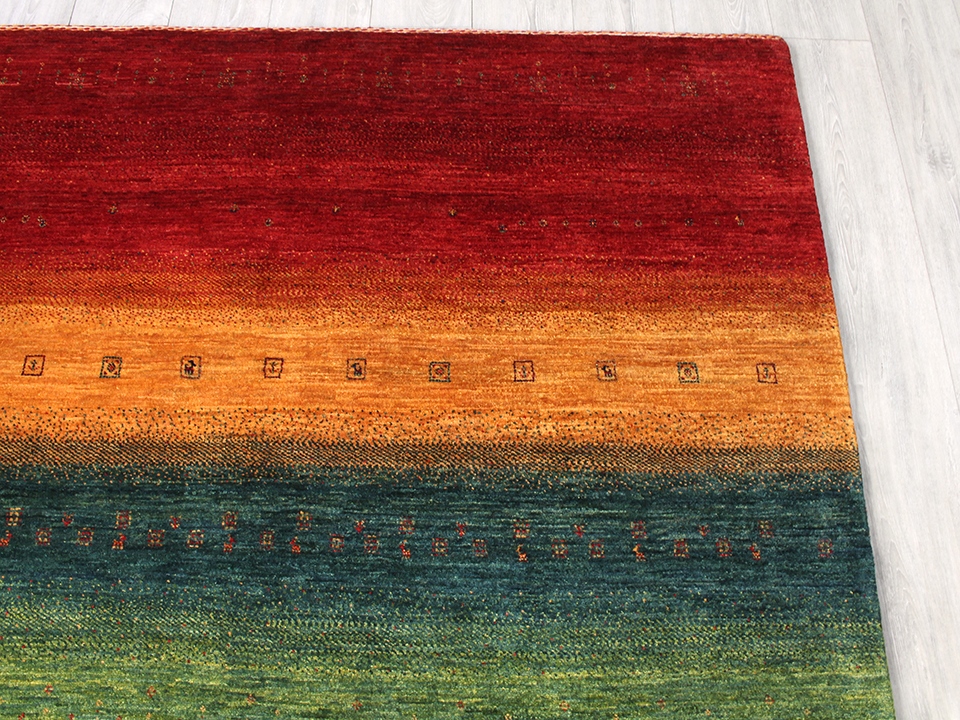 ロリアタシュ LoriAtash 手織りギャッベ232×167cm レッド・イエロー&グリーン