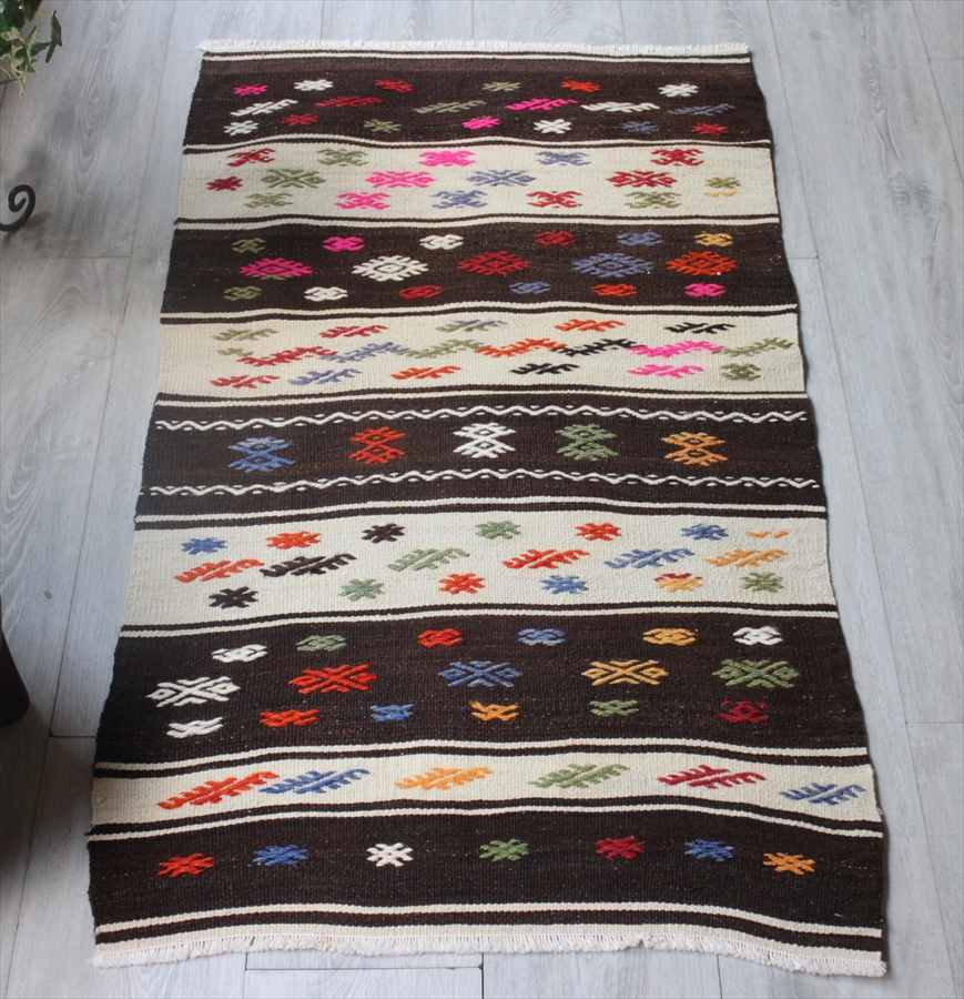 - オールドキリム・チュアル(収納袋)を開いたジジム118×64cm シンプルモノトーンにカラフルジジム
