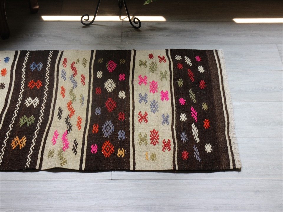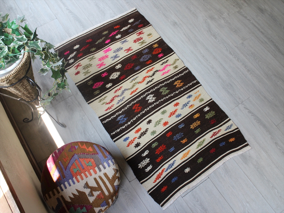 オールドキリム・チュアル(収納袋)を開いたジジム118×64cm シンプルモノトーンにカラフルジジム