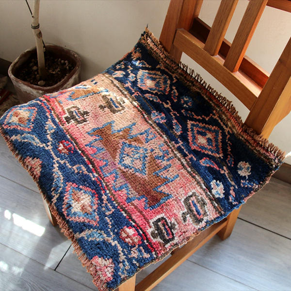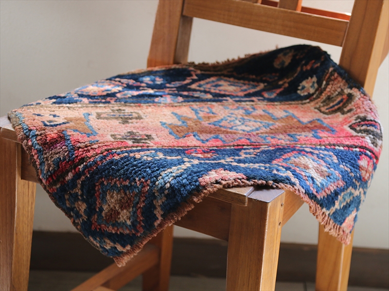 カスピ海南岸のアゼリー地方からテヘラン近郊に暮らしていたシャーサバン族の織ったカーペットです。もとは、直方体の家財道具などを収納する袋(マフラシュ)として使われるためのもので、この小さなパネルは立方体の側面用です。収納袋としてのカーペットやキリムは、テント室内の装飾も兼ねていたため、とても手の込んだ装飾性の高いデザインが多く、小さなサイズながら整ったピースがそろっているため、コレクションとしても人気があります。