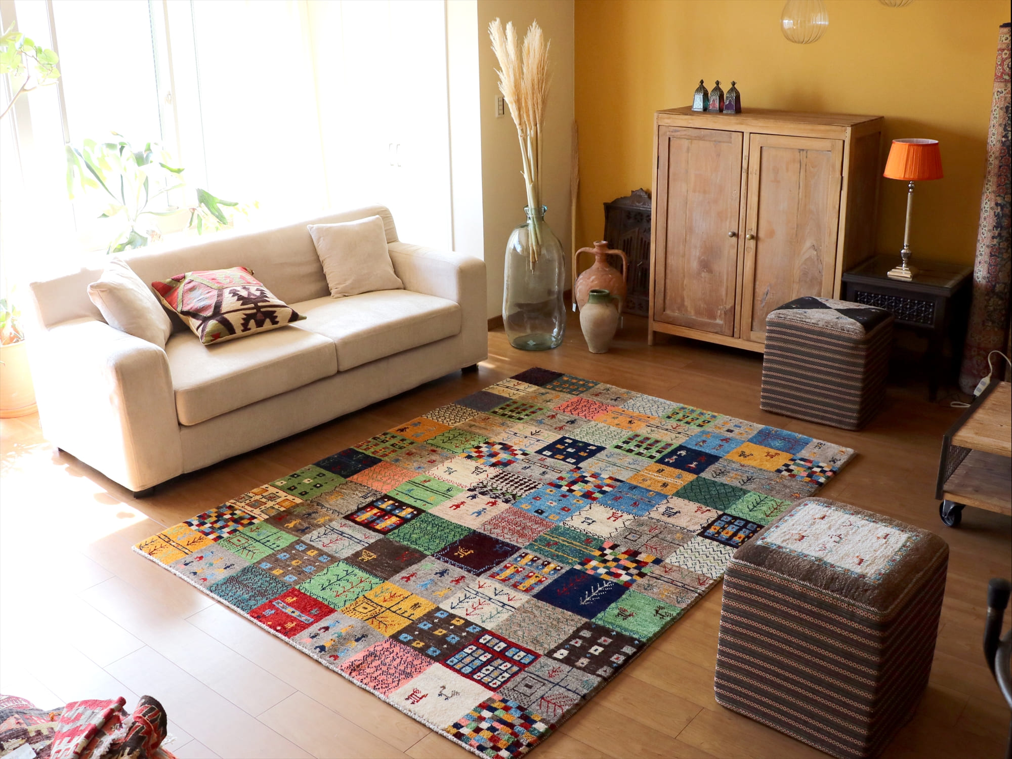 Key:Gabbeh, Persian, Iran, カシュカイ, ギャッベ, 手織り, ウール100%, Shiraz, Area Rug, Carpet, Handmade, Hand knotted, リビング, ソファ前, 東京、中野区