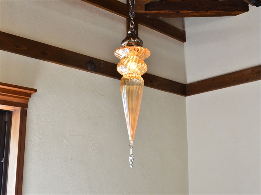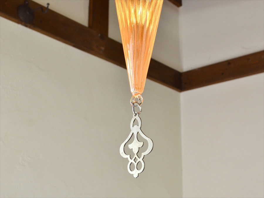 透明なガラスは、明るく実用的でシンプルなランプなのでモダンなお部屋にもピッタリです。チェーンはアラベスク模様、カップはクラシカルデザインと細部にこだわったデザインも魅力的です。