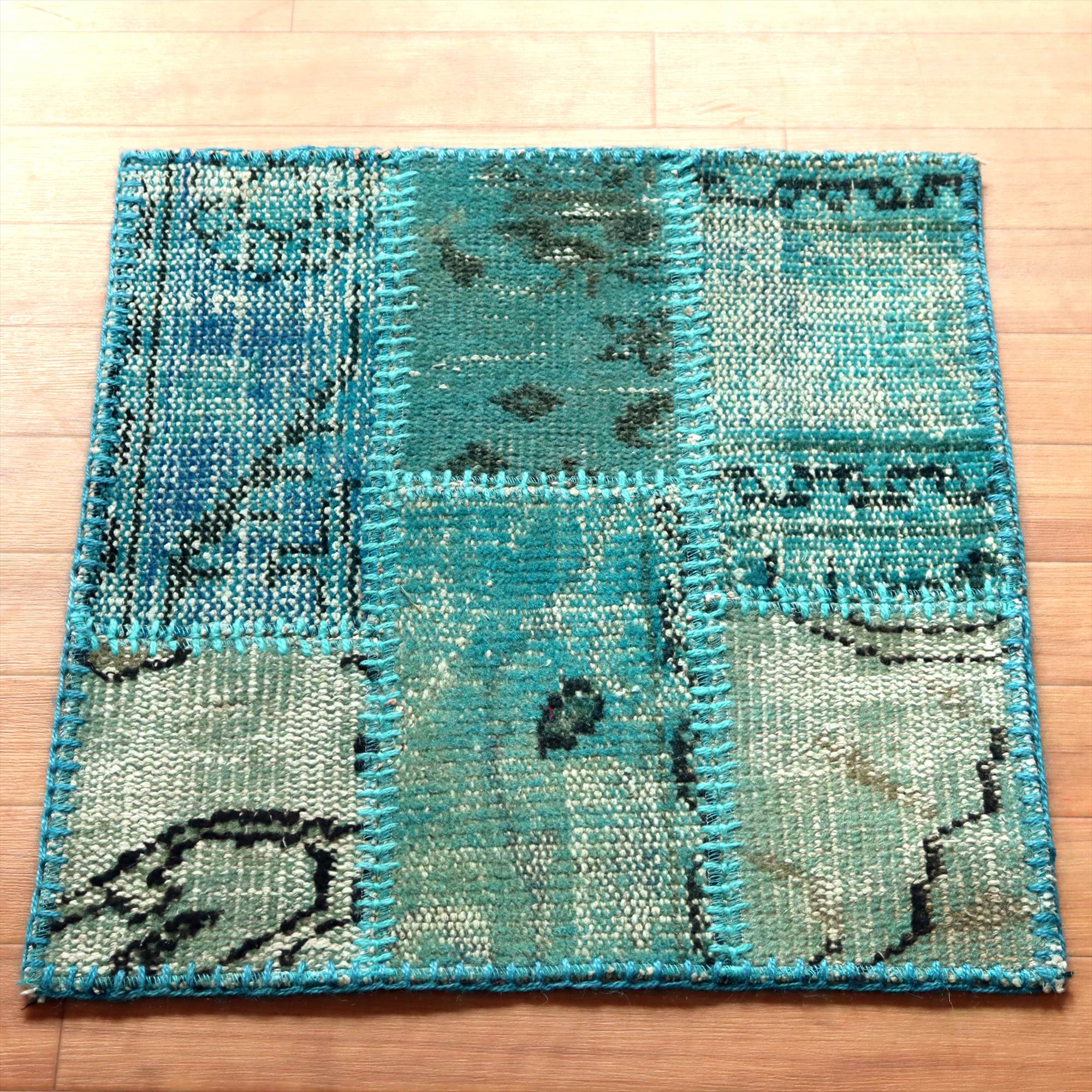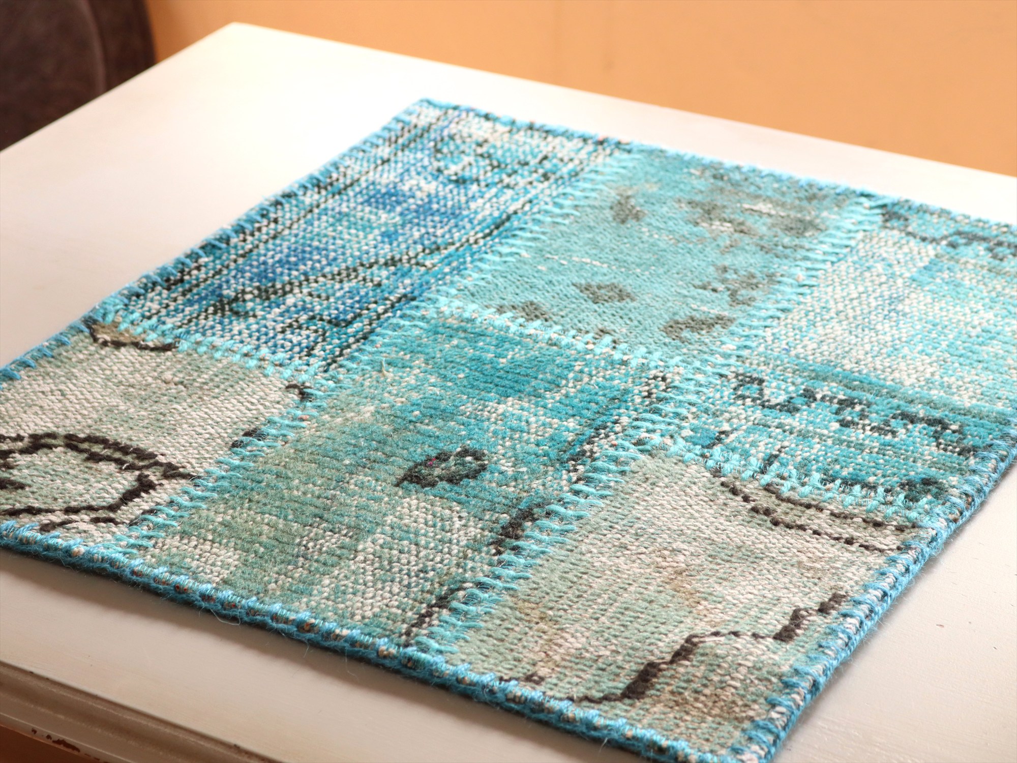 パッチワークラグ ミニフラグメント52×48cm ターコイズ
