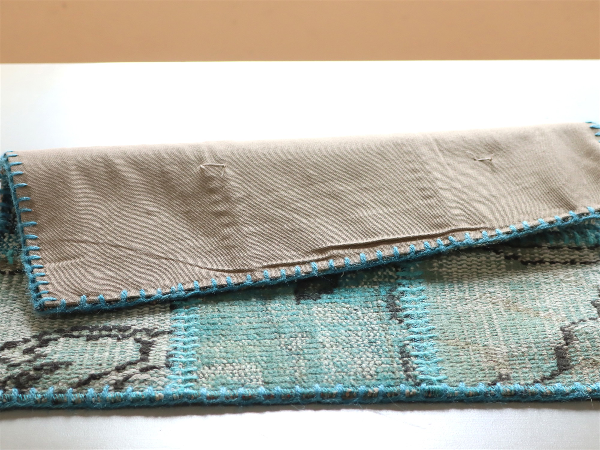 ダメージが多く、使われなくなった古い手織りカーペットを仕立て直したパッチワーク・ラグです。当店では、アナトリア(トルコ地方)のオールドカーペットのみを使い、縫い合わせ部分もミシンを使わず、手作業ではぎ合わせてあります。裏面にはコットン地が張り合わされています。ラグ(カーペット)自体は、パイル(毛足)が擦り減っているところなどが多々ありますが、使い古したラグならではの風合いとご理解ください。