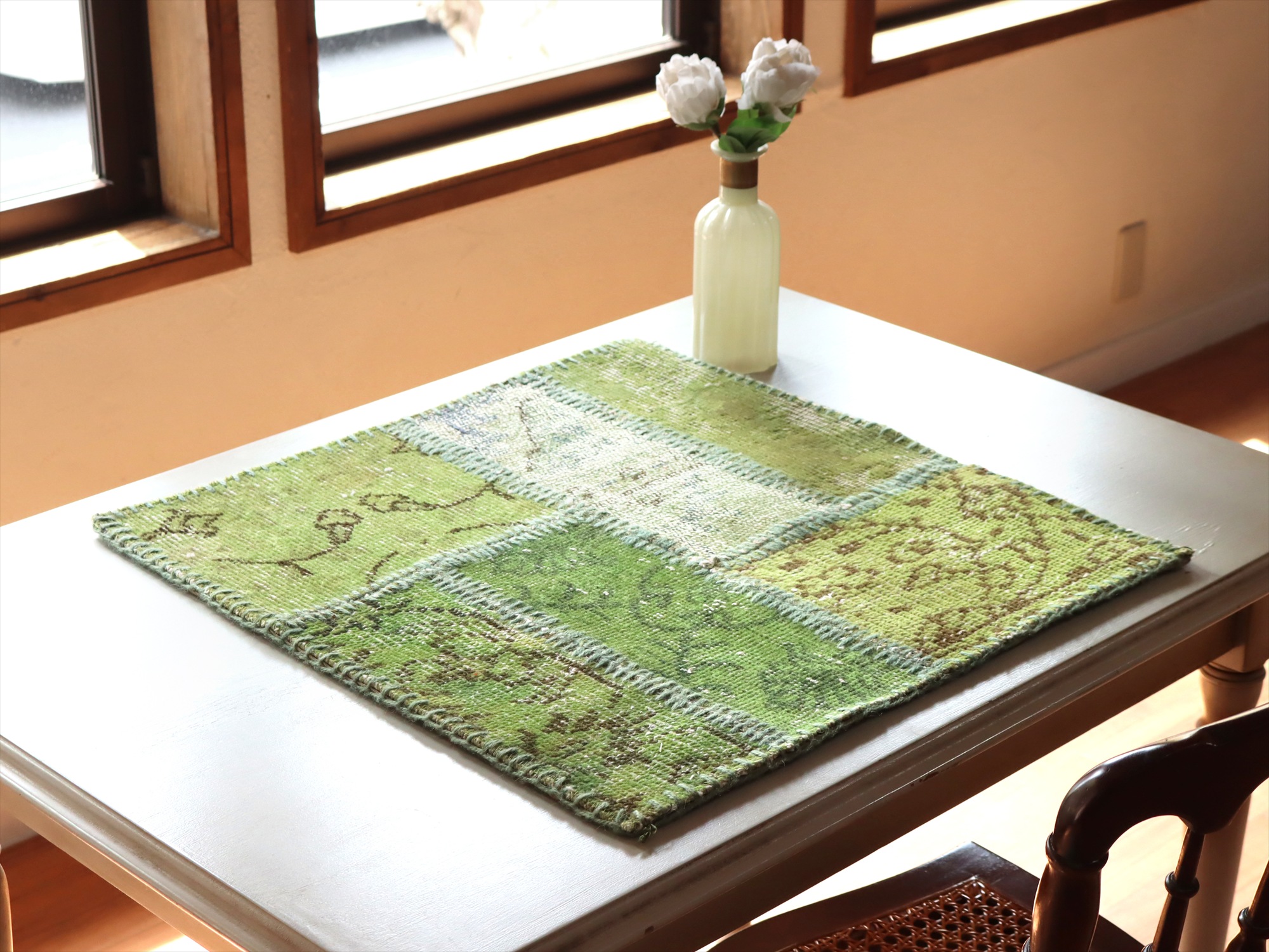 パッチワークラグ ミニフラグメント57×56cm グリーン