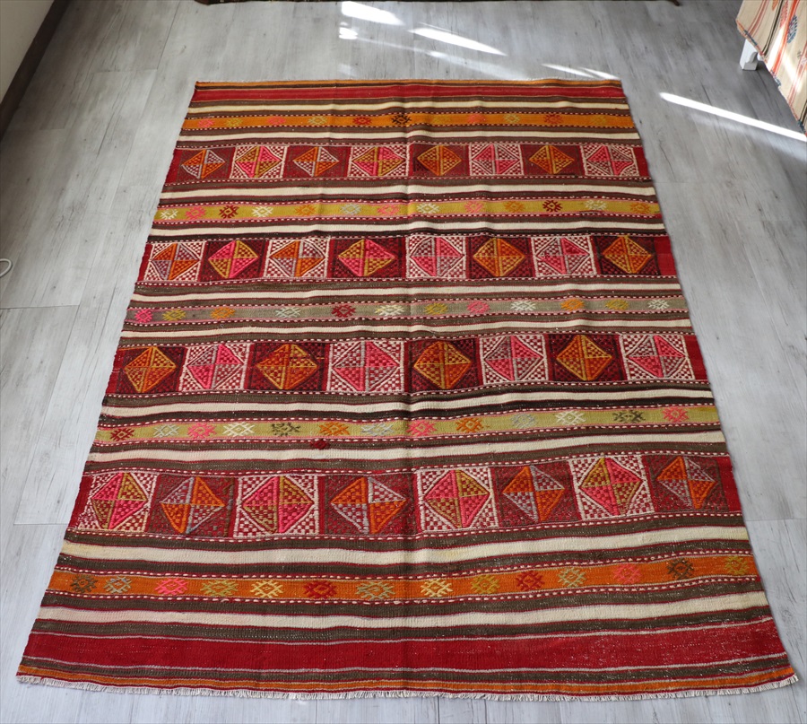 オールドキリム・コンヤ カリヨラサイズ217×147cm ダイヤのようなひし形のジジム