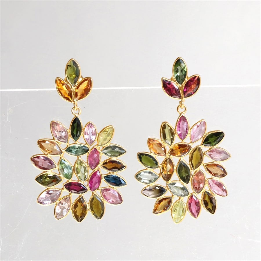 Jaipur ジャイプール 天然石シルバーピアス カラーストーントルマリンフラワーピアス マルチカラー Tourmaline