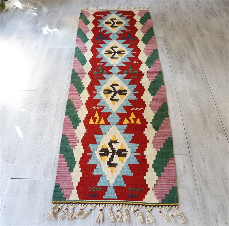 カイセリキリム・ミニランナー203×62cm 4つのひし形メダリオン