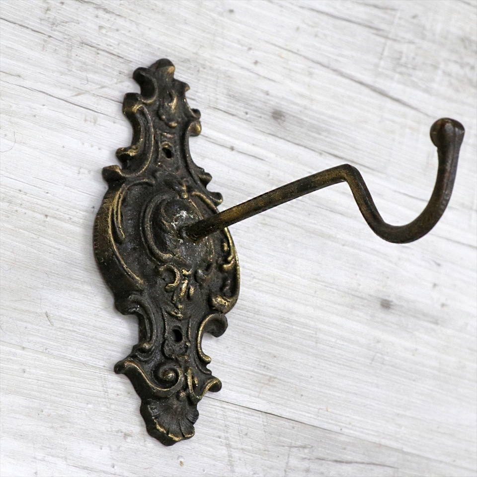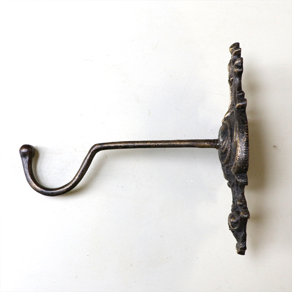 アンティークスタイルのレリーフが入った重厚感の溢れるブラケット。壁面からの立ち上がりは、約17.5cm。直径24cmくらいまでのランプをきれいに吊るすことができます