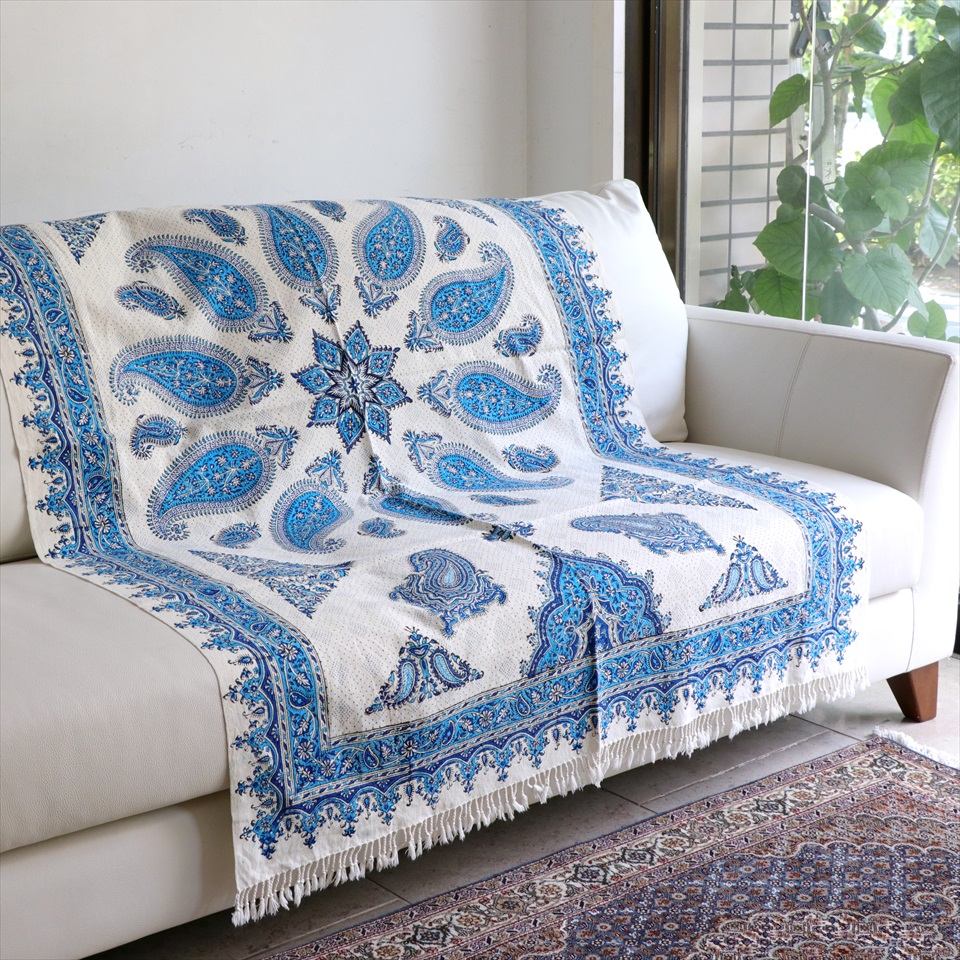Key:コットン・染色・ブロックプリント・木版・捺染・伝統工芸・インド更紗・ジャワ更紗・ペルシャブルー・ペイズリー・フリークロス・マルチカバー・ベッドスプレッド・ベッドカバー・ソファカバー・カーテン・タペストリー・ファブリック・インテリアファブリック・クラフト・インテリア・ペルシャ・ペルセポリス・イラン・中東・シルクロード・アジアン・エスニック