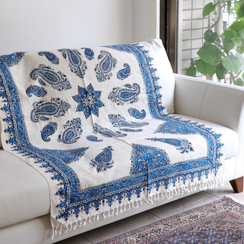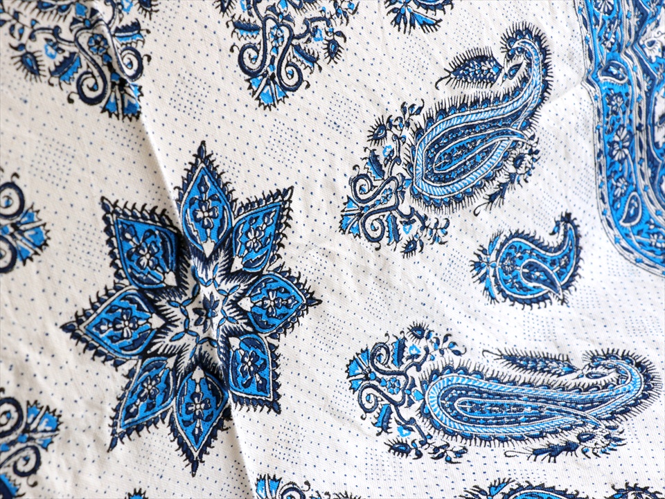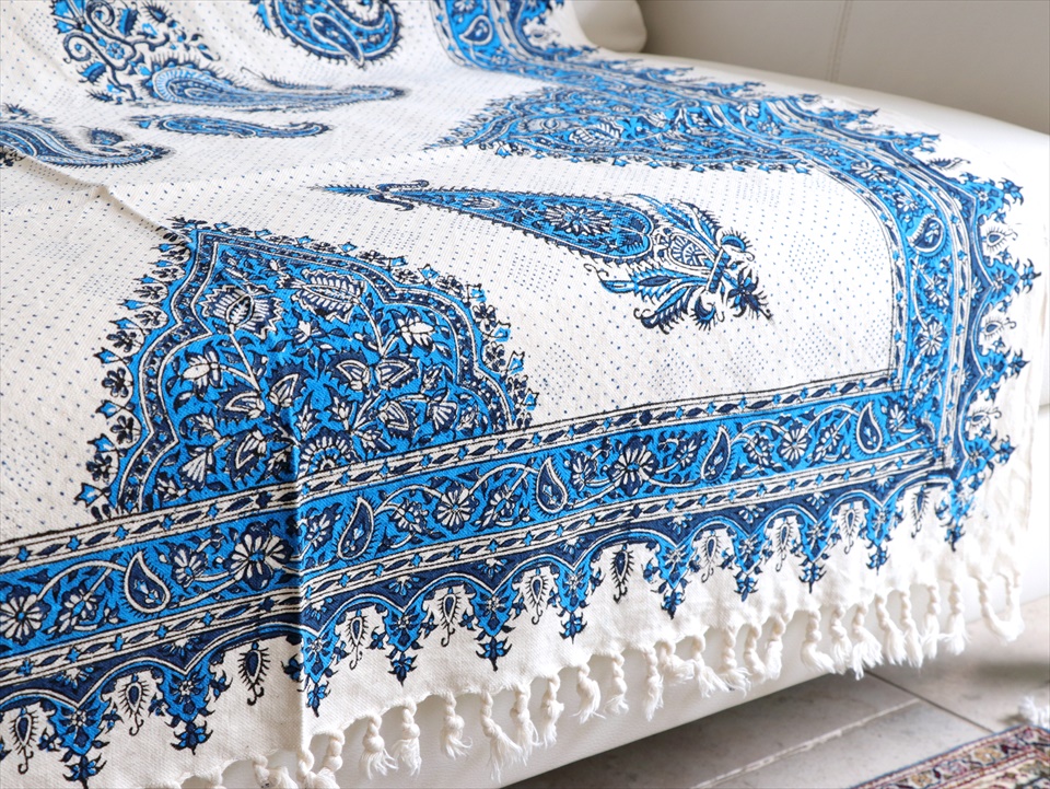 Key:コットン・染色・ブロックプリント・木版・捺染・伝統工芸・インド更紗・ジャワ更紗・ペルシャブルー・ペイズリー・フリークロス・マルチカバー・ベッドスプレッド・ベッドカバー・ソファカバー・カーテン・タペストリー・ファブリック・インテリアファブリック・クラフト・インテリア・ペルシャ・ペルセポリス・イラン・中東・シルクロード・アジアン・エスニック