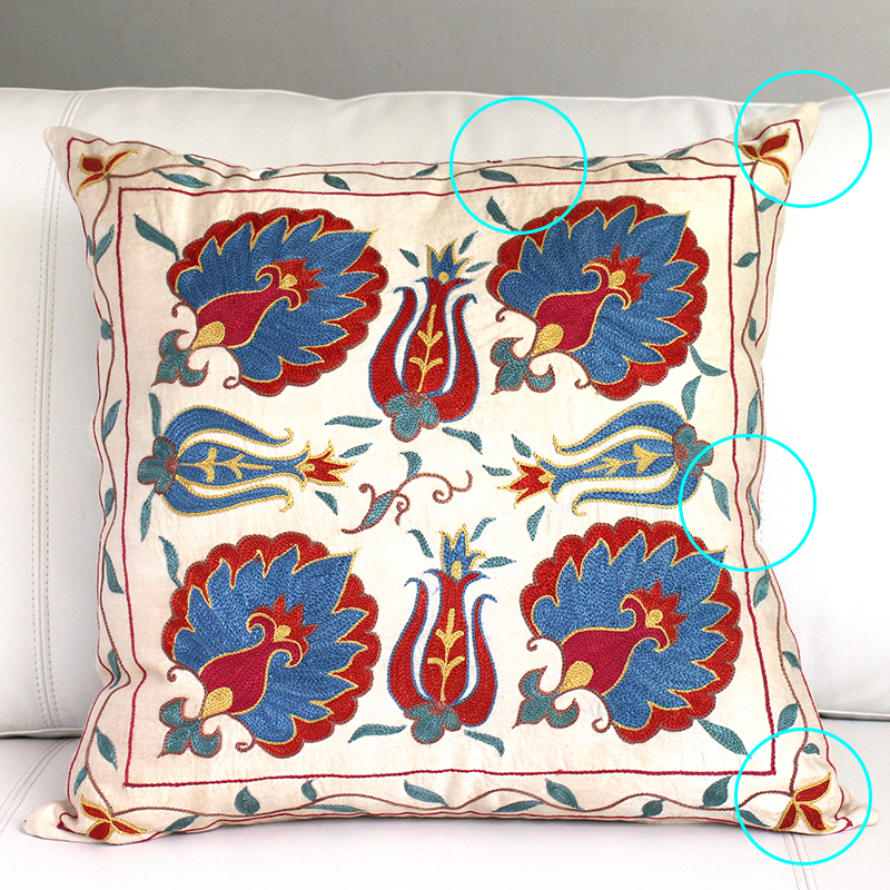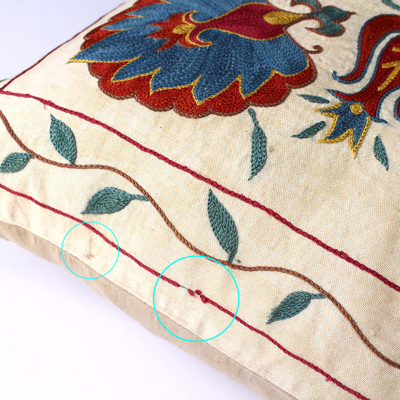 - クッションカバー50cm角 ウズベキスタン スザンニ suzani シルクの手刺繍 シミ・ほつれあり OUTLET・難あり