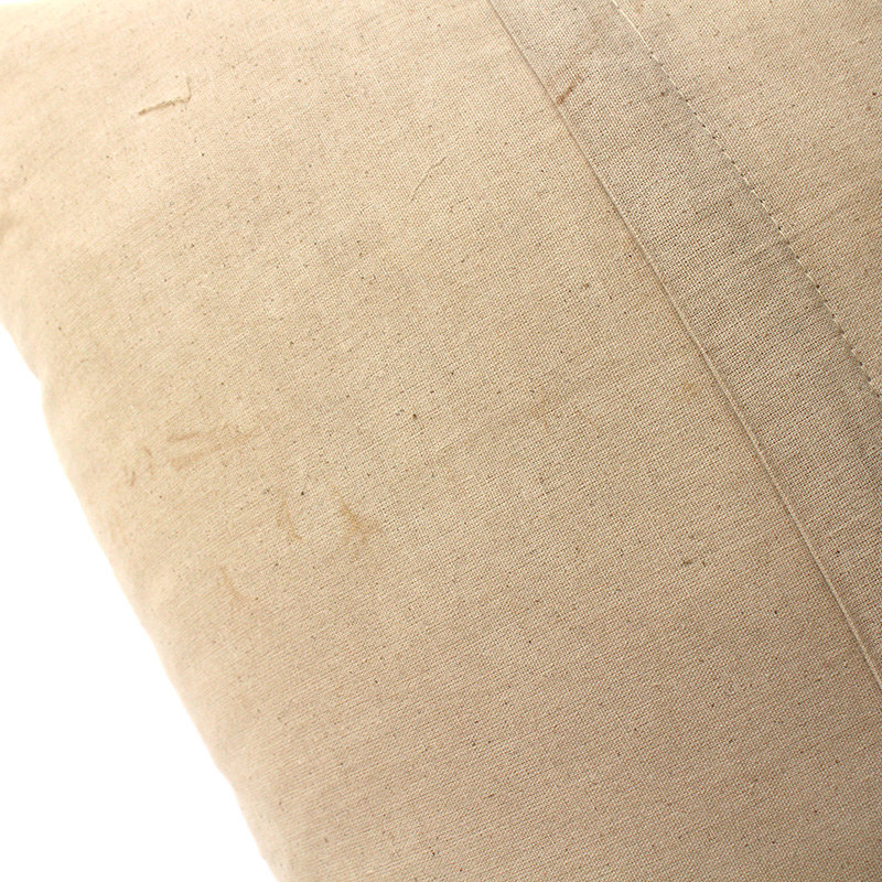 表の中央部分にうっすらとした青の色うつりがあります。ボーダーに1cmほど刺繍がほどけている部分があります。小さなシミ・汚れが数か所あります。裏面全体にシミがあります。表と裏の縫い合わせ部分と、ファスナーの取り付け部分にほつれがあります。