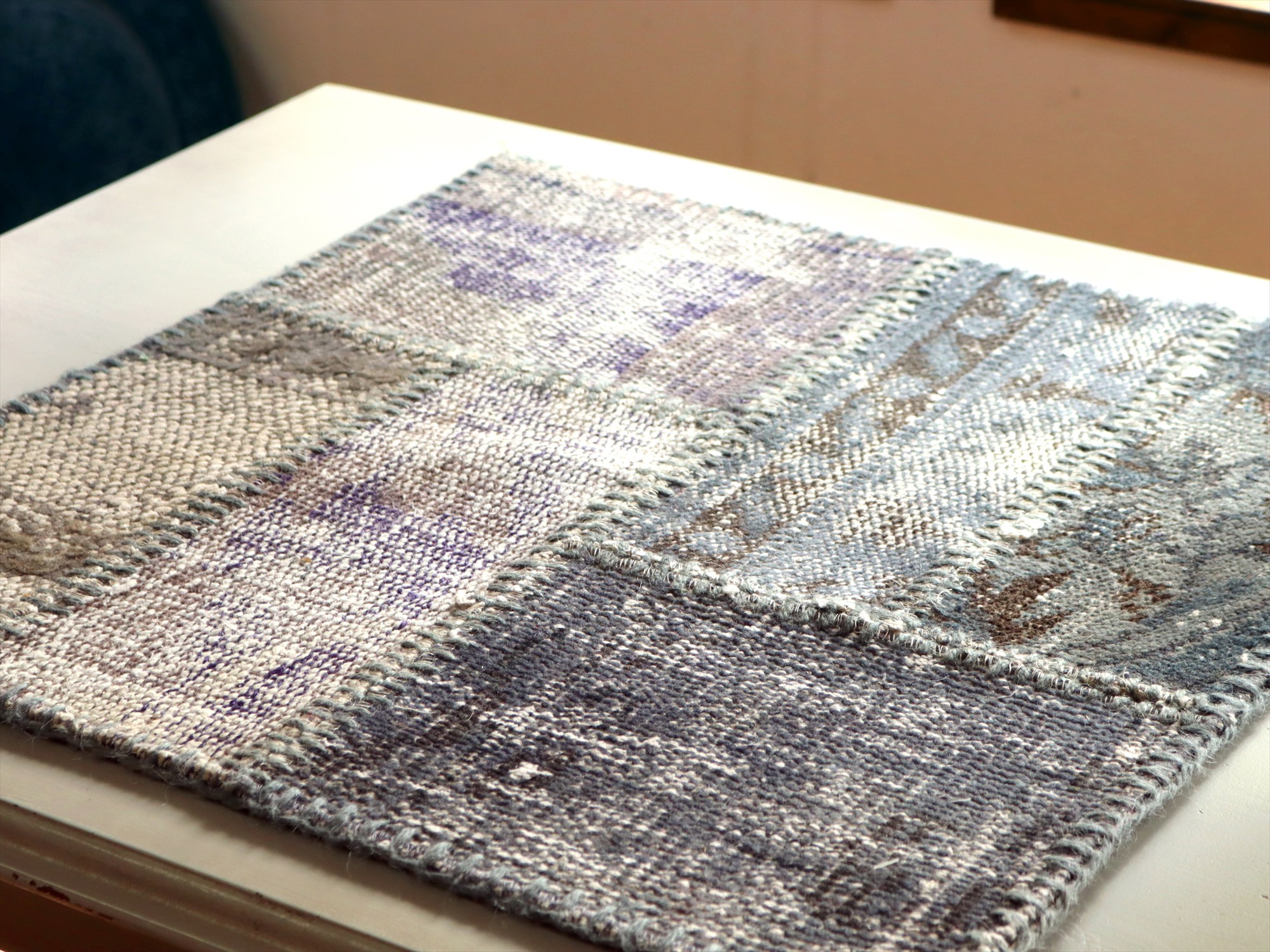 ダメージが多く、使われなくなった古い手織りカーペットを仕立て直したパッチワーク・ラグです。当店では、アナトリア(トルコ地方)のオールドカーペットのみを使い、縫い合わせ部分もミシンを使わず、手作業ではぎ合わせてあります。裏面にはコットン地が張り合わされています。ラグ(カーペット)自体は、パイル(毛足)が擦り減っているところなどが多々ありますが、使い古したラグならではの風合いとご理解ください。
