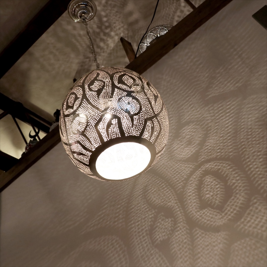 - 【10%OFF】メタルシェード モロッコランプ Moroccan Metal shade Lamps ペンダントランプ ラウンド形 φ27cm エジプト製