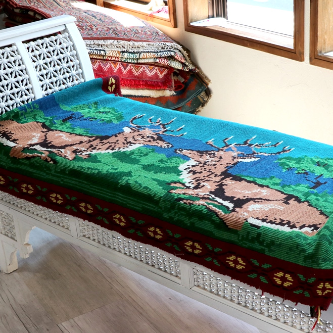 - オールドキリム トルキッシュカラバー タペストリー163×77cm 向き合う二頭の鹿