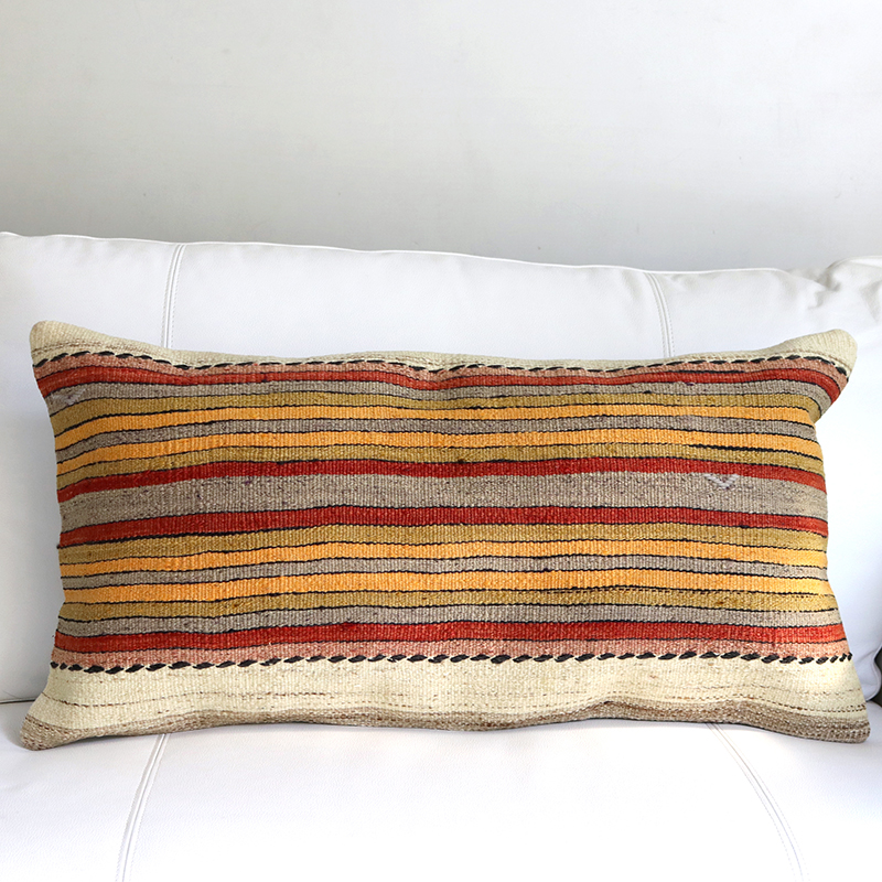 オールドキリムクッションカバー 長方形ビッグピロー72×38cm ナチュラルカラー シンプル Turkish Old Kilim Cushion